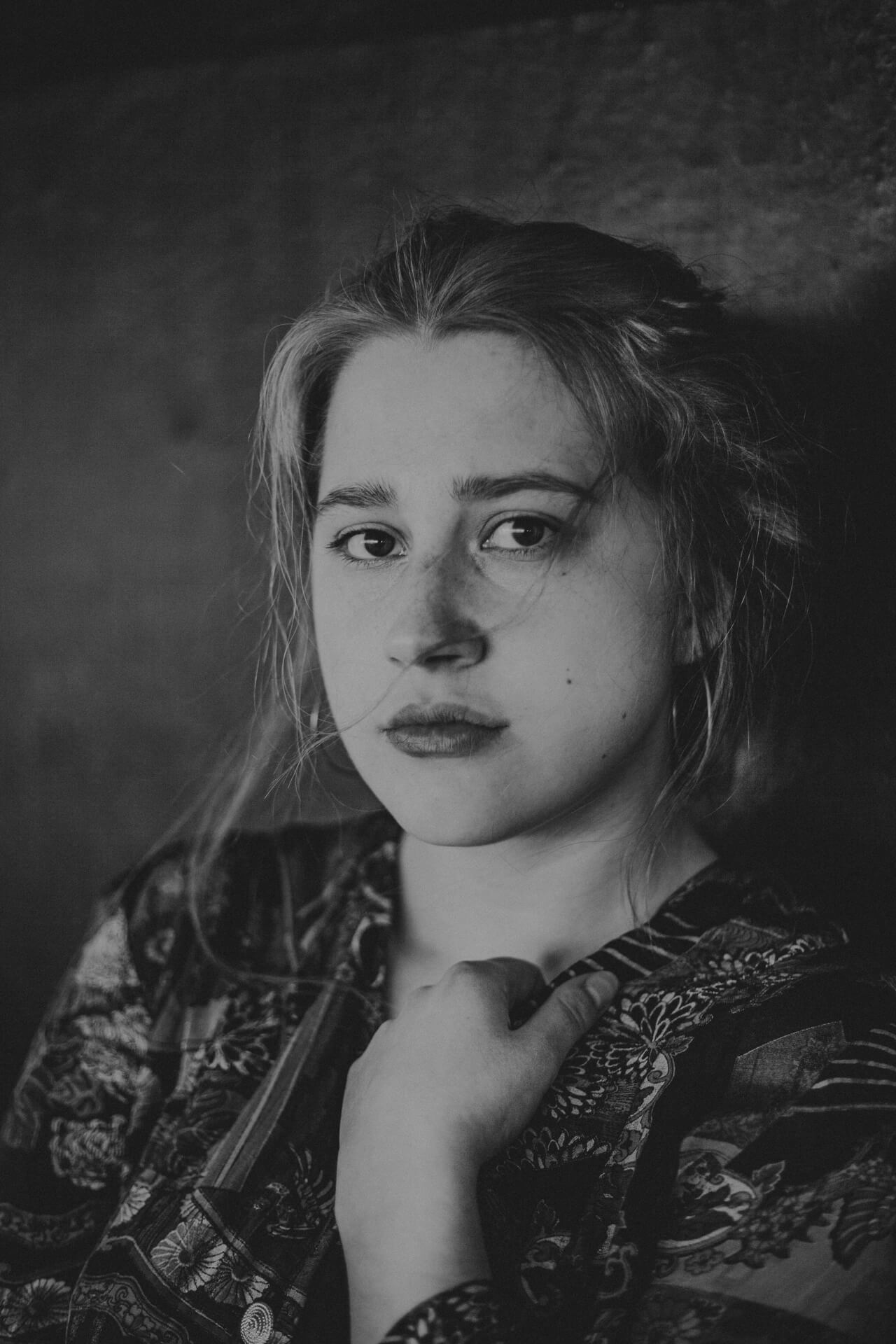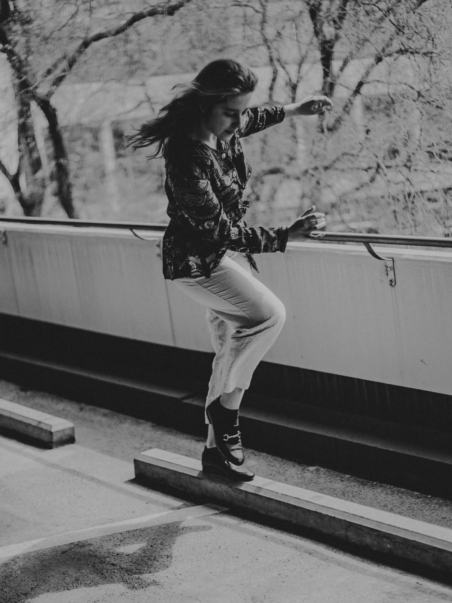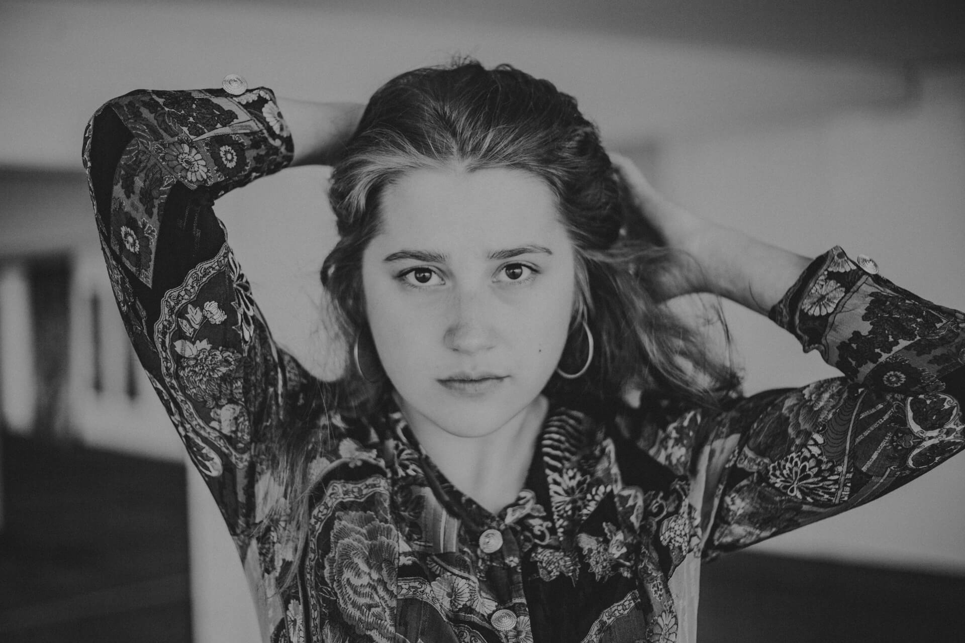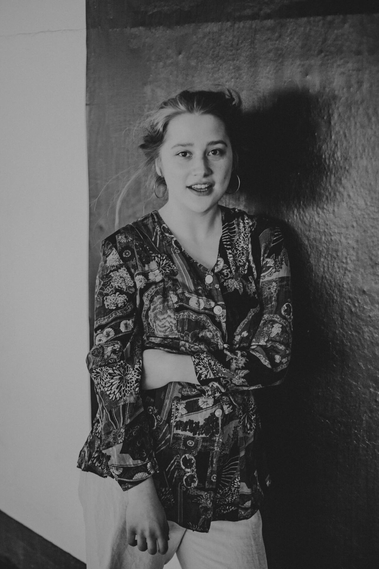 Ich bin in Stuttgart, um meine Schwester Theater spielen zu sehen. Bei dieser Gelegenheit biete ich Studierenden der HDMK Stuttgart Portraitshoots an. Marie ist da gerade in ihrem ersten Jahr des Schauspielstudiums. Wir treffen uns in einem Parkhaus, es ist ein warmer Tag und die Sonne steht hoch am Himmel. An den Wänden sind großformatige Fotografien tapeziert, die wir in das Shooting mit einbinden. Die Arbeit mit Marie ist leicht, alles geht wie von selbst. Sie nimmt meine Bildideen auf, fügt eigenes hinzu und entwickelt weiter. Ich bin gespannt, wo es sie noch hintreiben wird.