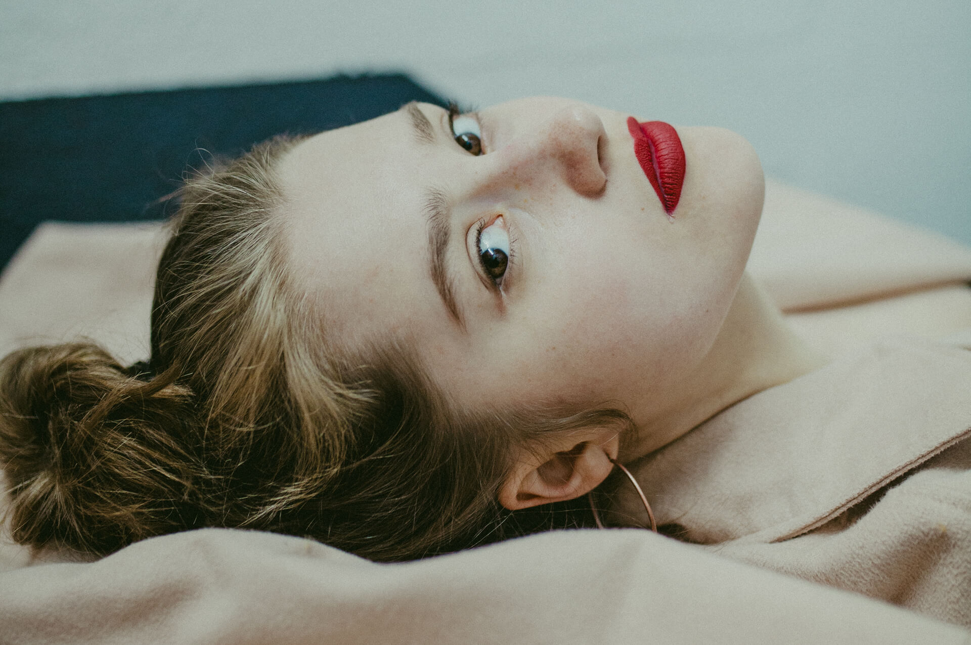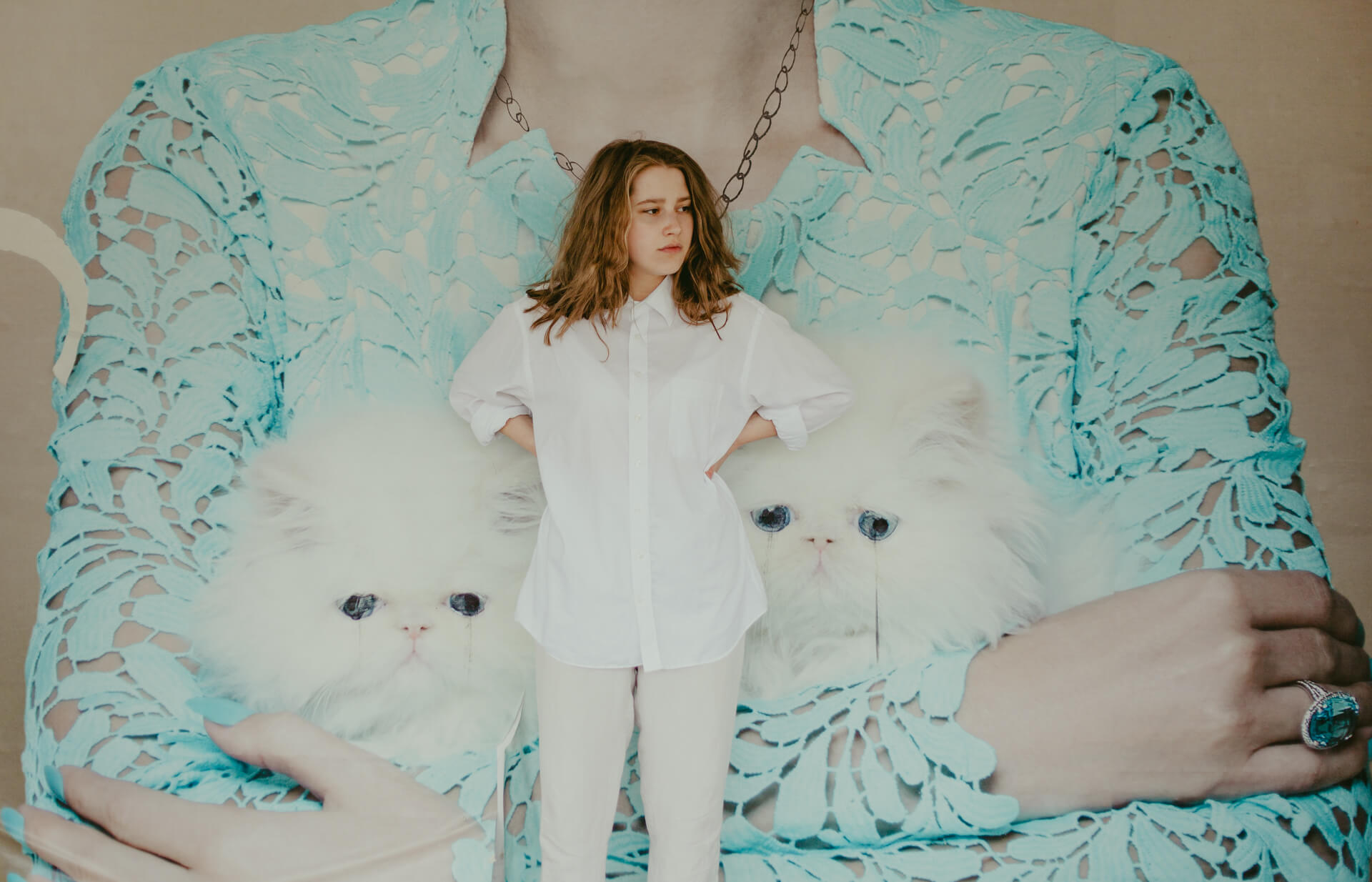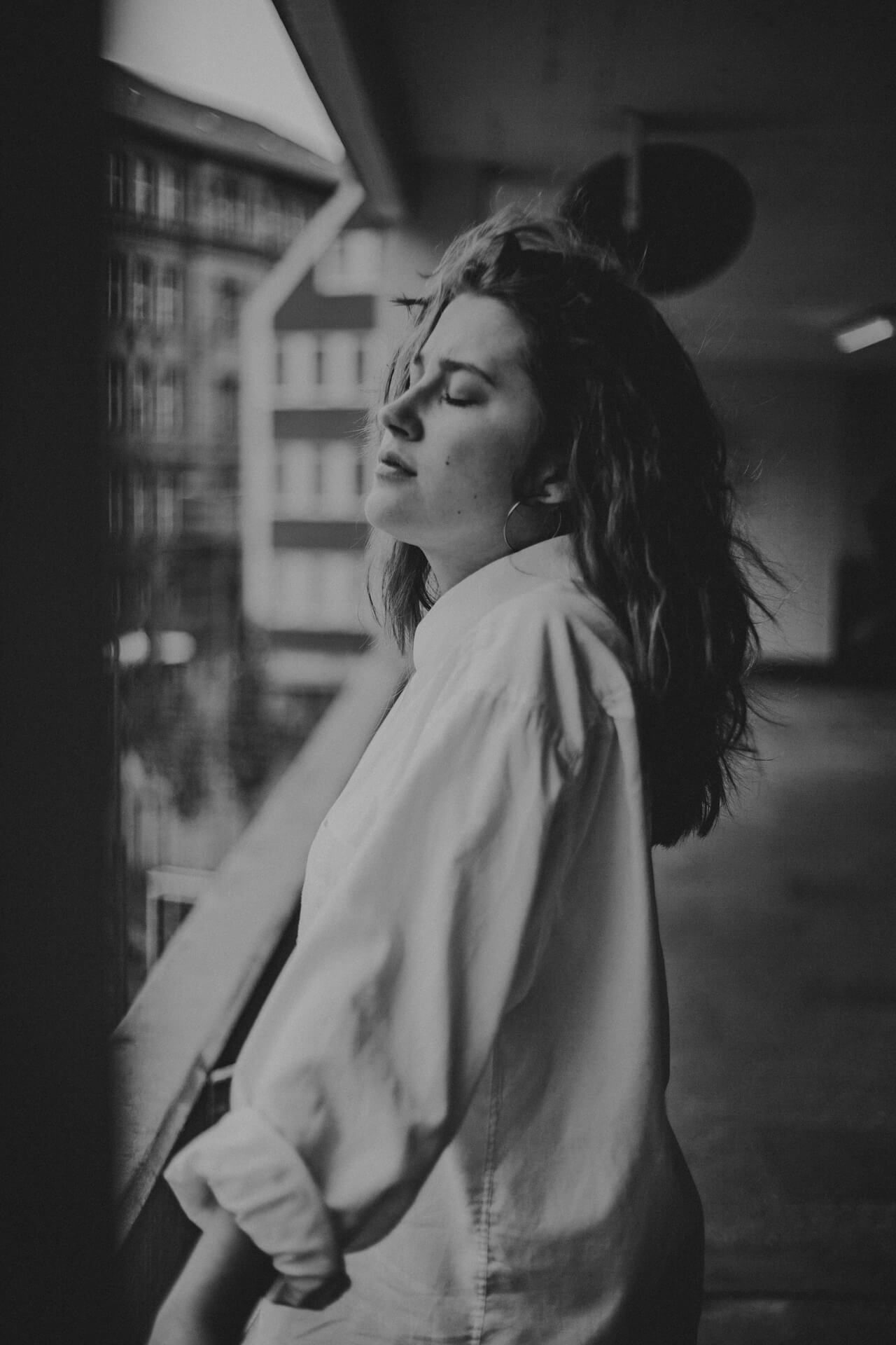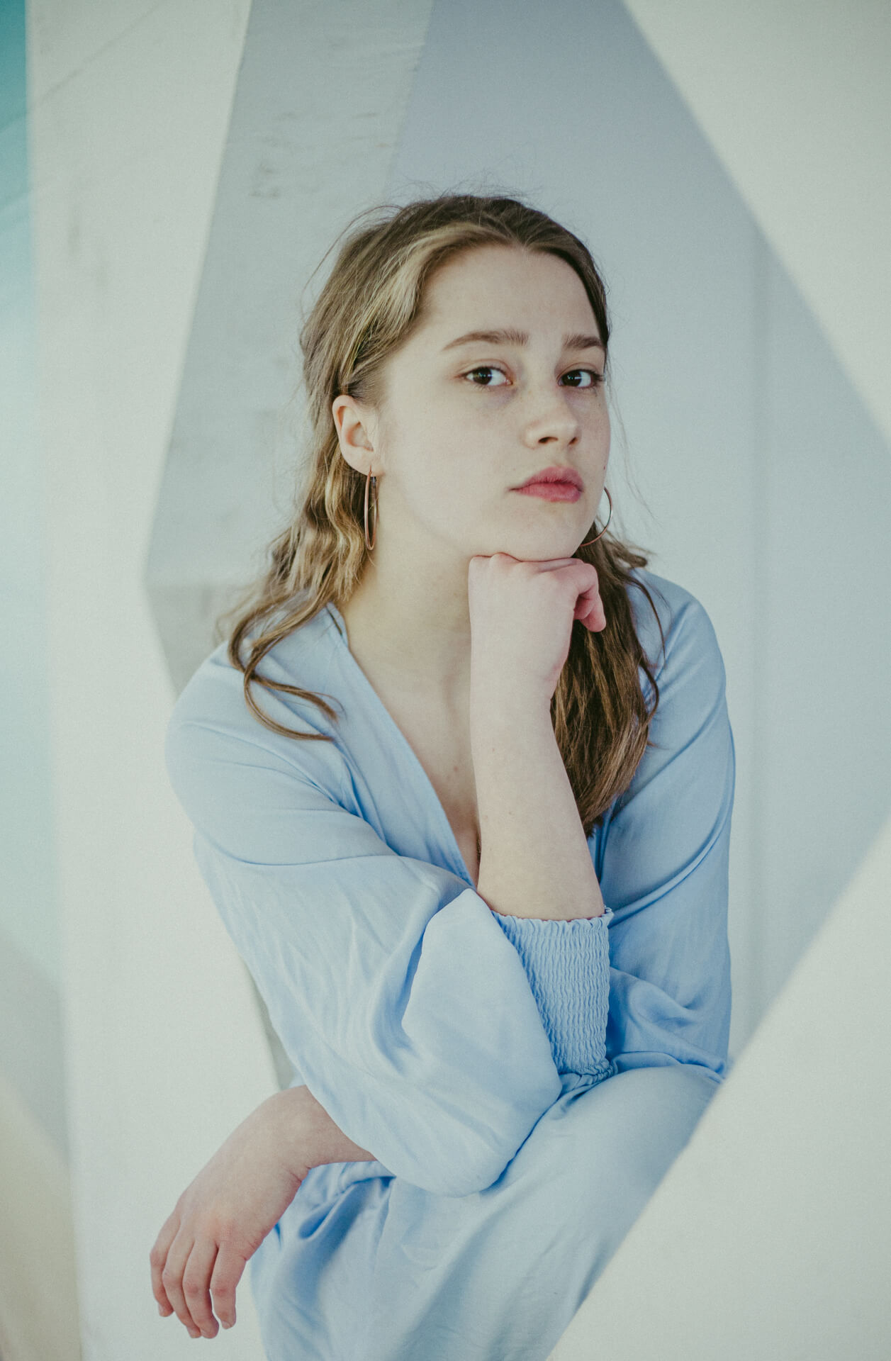 Ich bin in Stuttgart, um meine Schwester Theater spielen zu sehen. Bei dieser Gelegenheit biete ich Studierenden der HDMK Stuttgart Portraitshoots an. Marie ist da gerade in ihrem ersten Jahr des Schauspielstudiums. Wir treffen uns in einem Parkhaus, es ist ein warmer Tag und die Sonne steht hoch am Himmel. An den Wänden sind großformatige Fotografien tapeziert, die wir in das Shooting mit einbinden. Die Arbeit mit Marie ist leicht, alles geht wie von selbst. Sie nimmt meine Bildideen auf, fügt eigenes hinzu und entwickelt weiter. Ich bin gespannt, wo es sie noch hintreiben wird.
